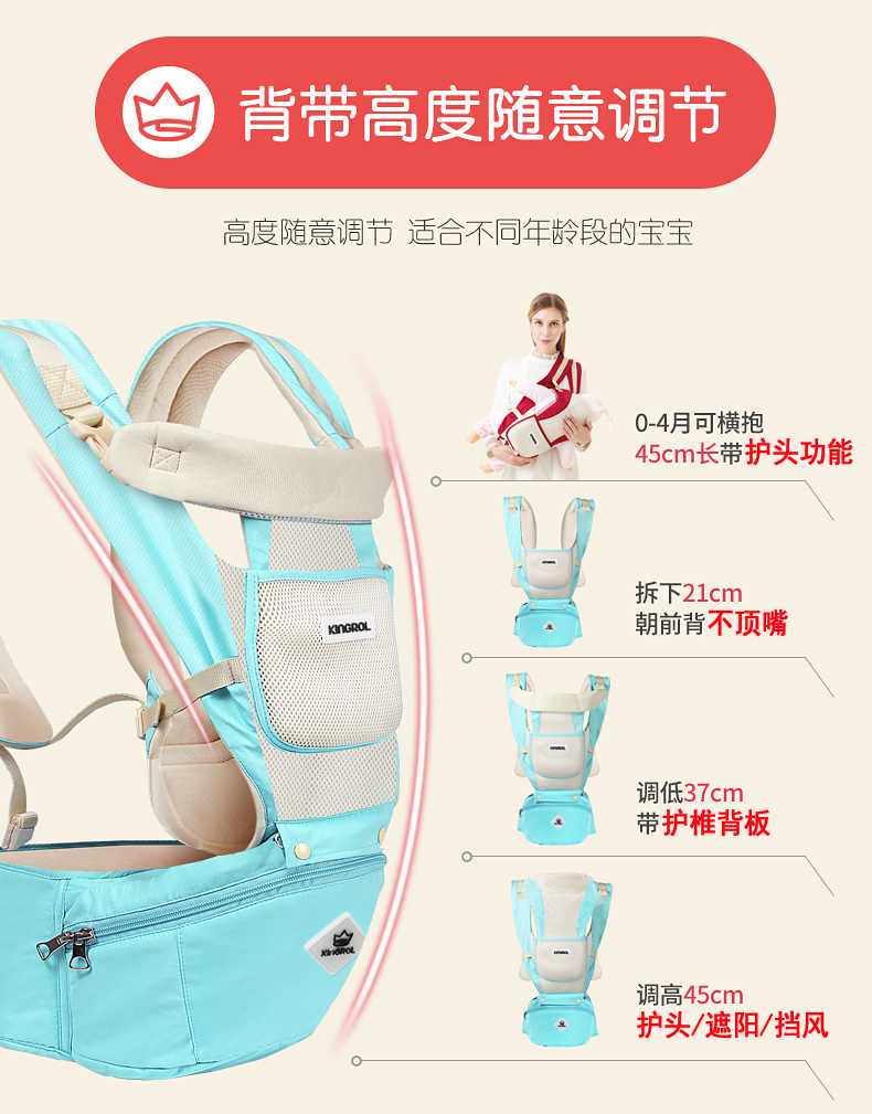 Baby Carrying Strap Newborn Baby Front Horizontal Hugging Style, Child Hugging Divine Tool, Waist Stool, Multi functional, All Seasons Universal 【 Horizontal Hugging with Storage Function 】 Pure Cotton Breathable Light Blue
