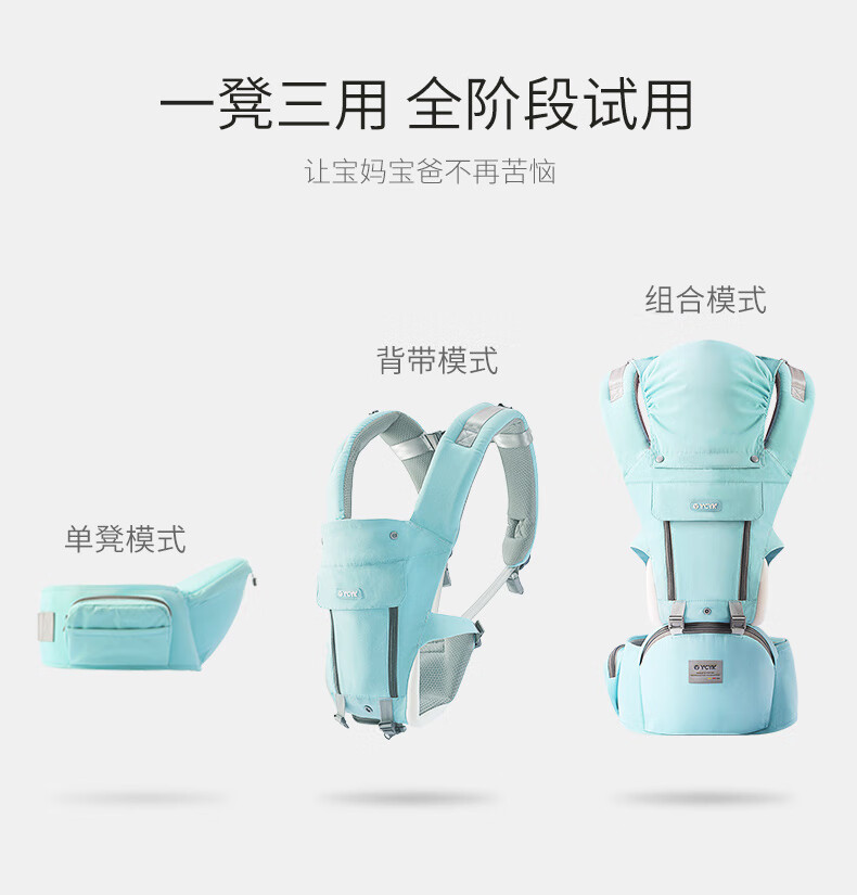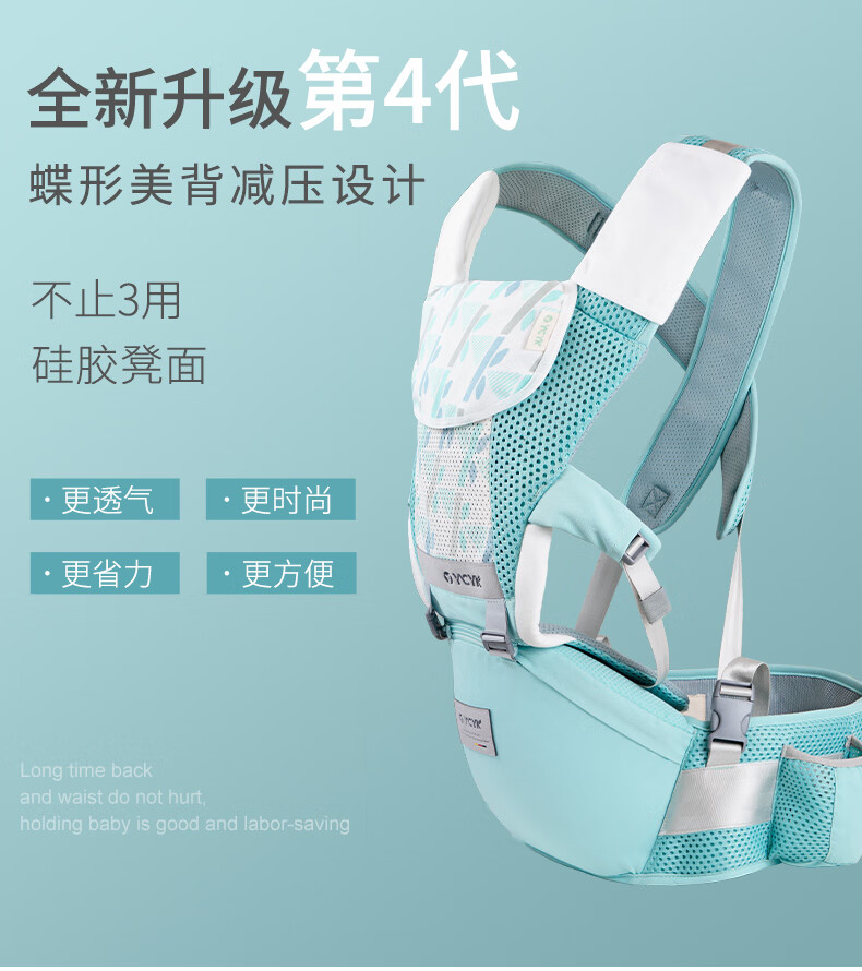 YCYK Baby Shoulder Belt Waist Stool Baby Baby Baby Hugging God Tool Four Seasons Universal Seat Stool Multi functional Breathable and Non tiring Waist Front and Back Hug Style Yahe Green (Four Seasons Edition) [Image Price Brand Quotation]-