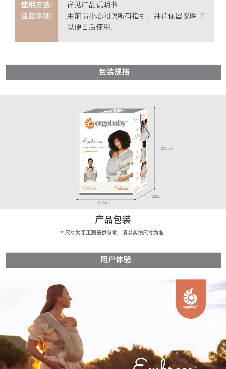 ERGObaby American Two Dog Strap Imported Embrace Series Embrace Two Style Baby Strap Four Seasons 22 New Two Style Upgraded Breathable - Gray [Image Price Brand Quotation]-