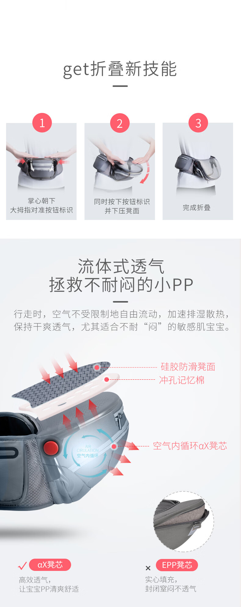 Holding a bear for 0-36 months, lightweight and portable, front and rear dual-purpose baby, baby shoulder strap, waist stool α X19 Siya Powder