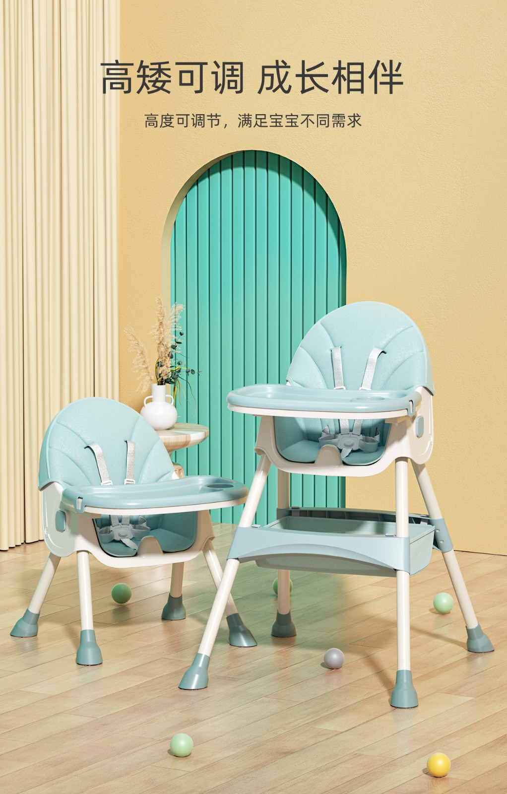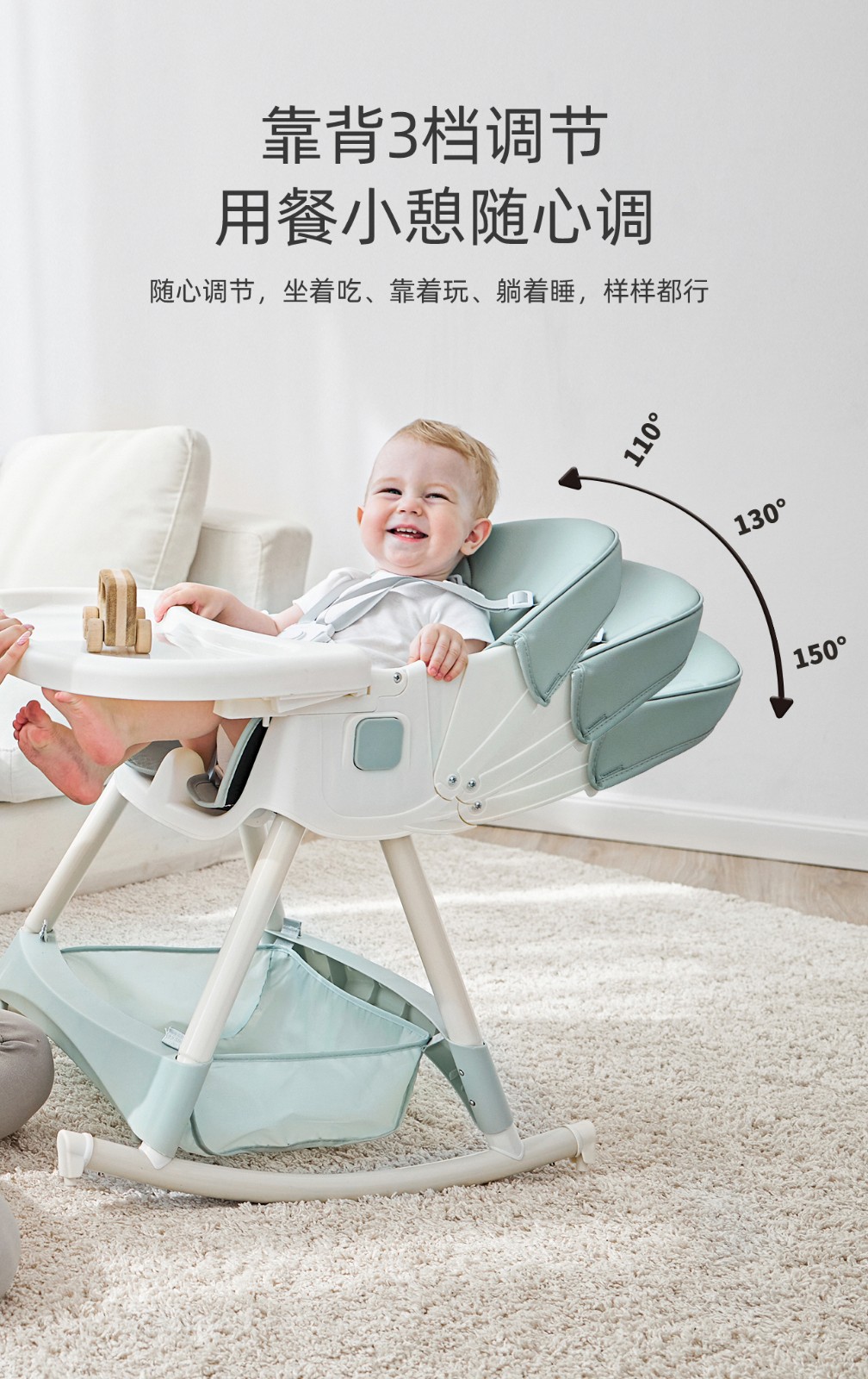 Babybaby Baby Highchair Adjustable Portable Child Chair Multi functional Baby Dining Table Seat Blue New Portable+Wheels+Swinging Horse+Reclining Backrest (Portable Dining Plate)