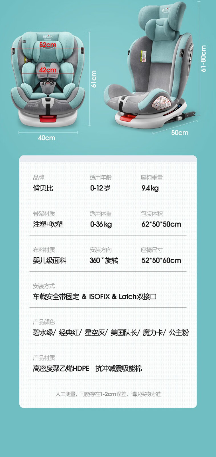 | Product name: Qiaobeibi Children's Car Seat Automotive Baby Car Seat 360 degree Rotating Portable Seat 0-year-old Universal Green [360 degree rotating+dual interface+seat belt] | Product name: Qiaobeibi Children's Car Seat Automotive Baby Car Seat 360 degree Rotating Portable Seat 0-year-old Universal Green [360 degree rotating+dual interface+seat belt] |