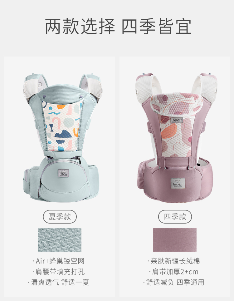 Hugging Baby Bear Baby Carrying Strap Baby Waist Stool Lightweight Four Seasons Multi functional Front Hug Front and Rear Dual Use Carrying Strap Waist Stool Holding Baby God TC26 Maggie Powder EPP Stool Core (Air+Upgraded Breathable)