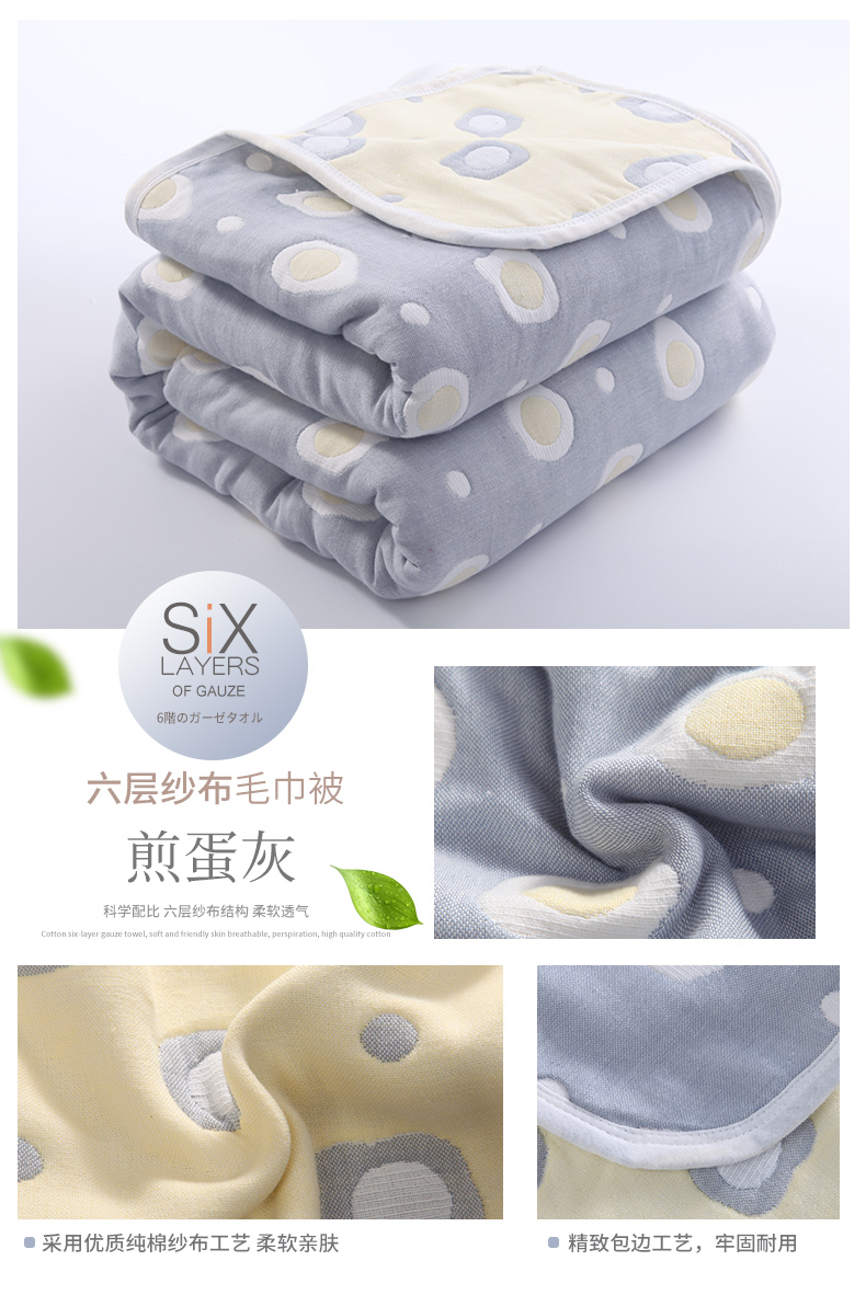 Charming Home 6-layer Gauze Towel Quilt, Pure Cotton Baby Quilt, Single and Double Lunch nap Small Blanket, Summer Children's Air Conditioning Cover Blanket, Fried Egg Green 90cmx100cm (6-layer Gauze All Cotton) [Image Price Brand Quotation]-
