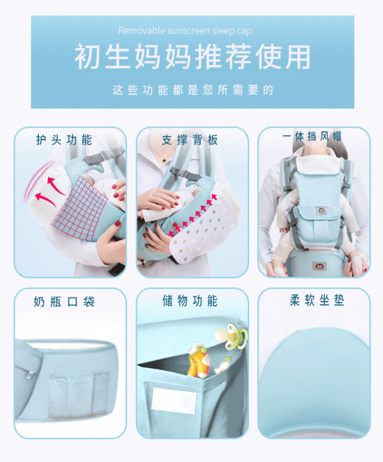 Xunliba Backbelt Waist Stool, Four Seasons Multifunctional Baby Products Universal Baby Front Hug Single Stool, Lightweight Baby Hugging God Tool, Sitting Stool, Three in One, Pure Cotton Blue [Image Price Brand Quotation]-