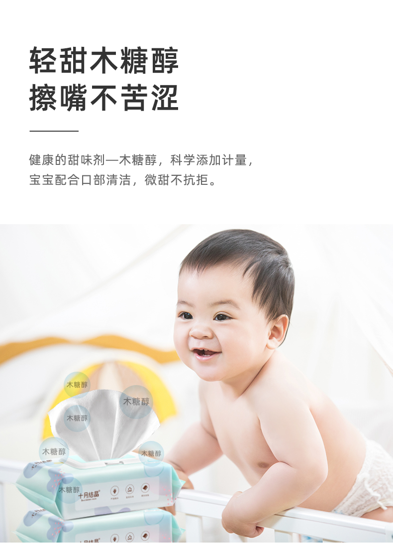 October Crystal Baby Skincare Hygiene Wipes for Newborn Hand and Mouth Special Baby Wet Paper Towels [Baby Wipes] 10 draws -20 packs