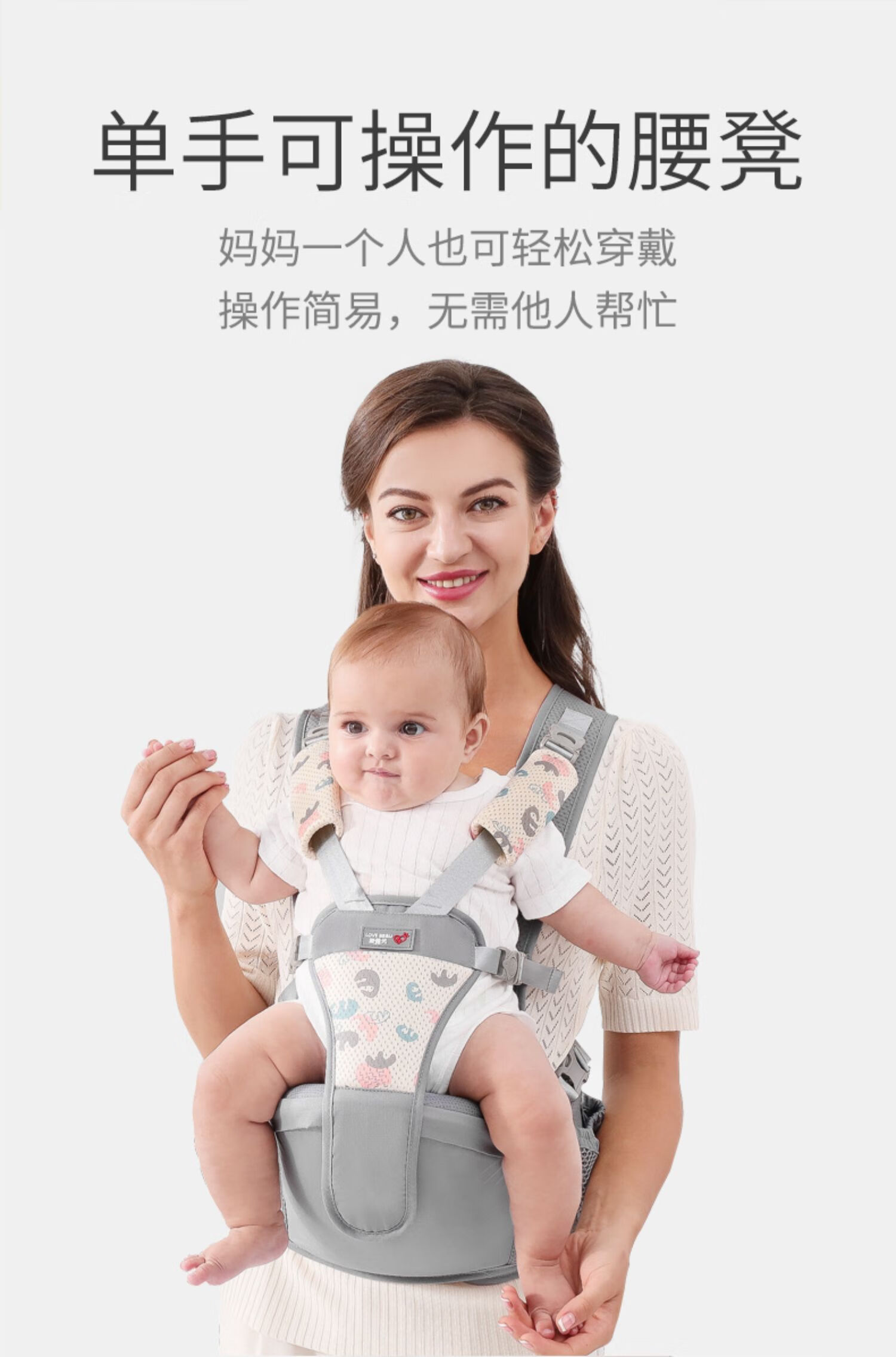 Ai Bei You Waist Stool Baby Lightweight Four Seasons Sitting Stool Baby Carrying Strap Multifunctional Front and Rear Dual Use Hug Holder Outdoor Hug Baby God Tool Mist Grey - Breathable Style No Neck Jam