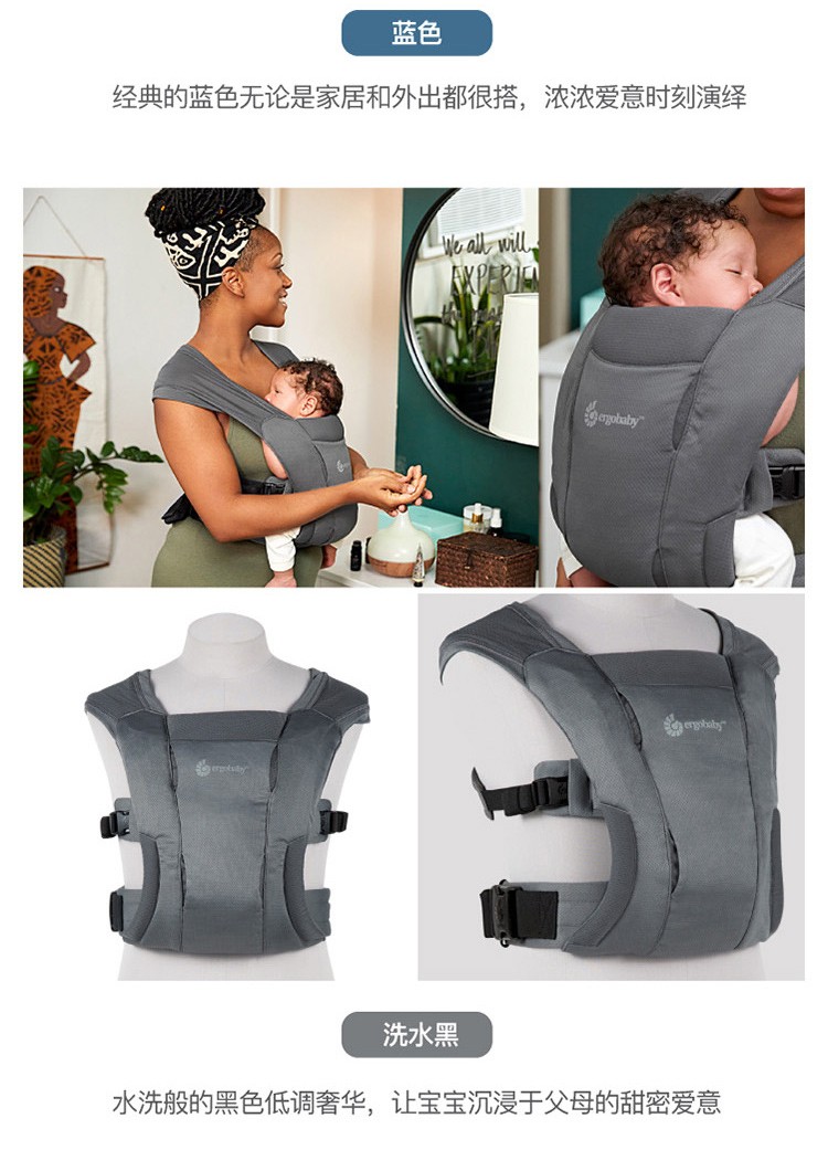 ERGOBABY US Two Dog Strap Encapsulation Two Style Newborn Baby Strap Embracing Baby Tool Strap 0-2 Years Old Washed Black [Image Price Brand Quotation]-